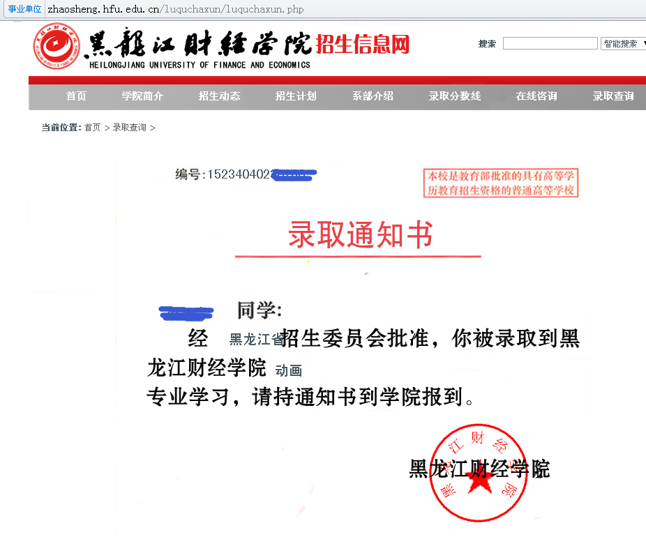 考生可登陆我院招生信息网录取——查询界面进行查询(http://zhaosheng.hfu.edu.cn/luquchaxun)。