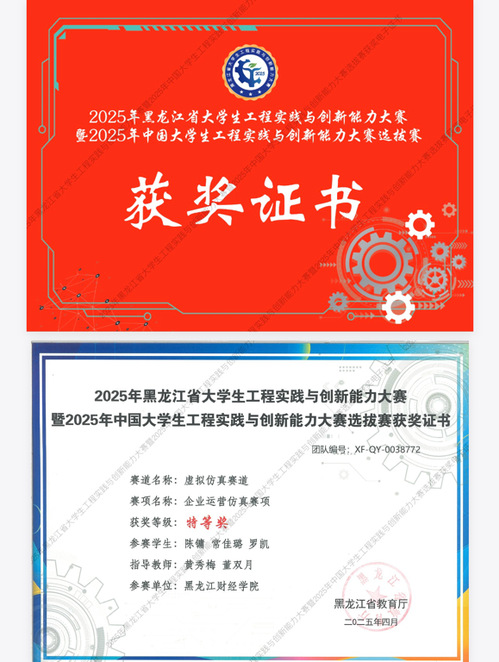 日前,2025年黑龙江省大学生工程实践与创新能力大赛企业运营仿真赛圆满结束,我校经济学院黄秀梅、董双月指导,陈镛、常佳璐、罗凯三位同学组成的团队获企业运营仿真赛项省级特等奖。