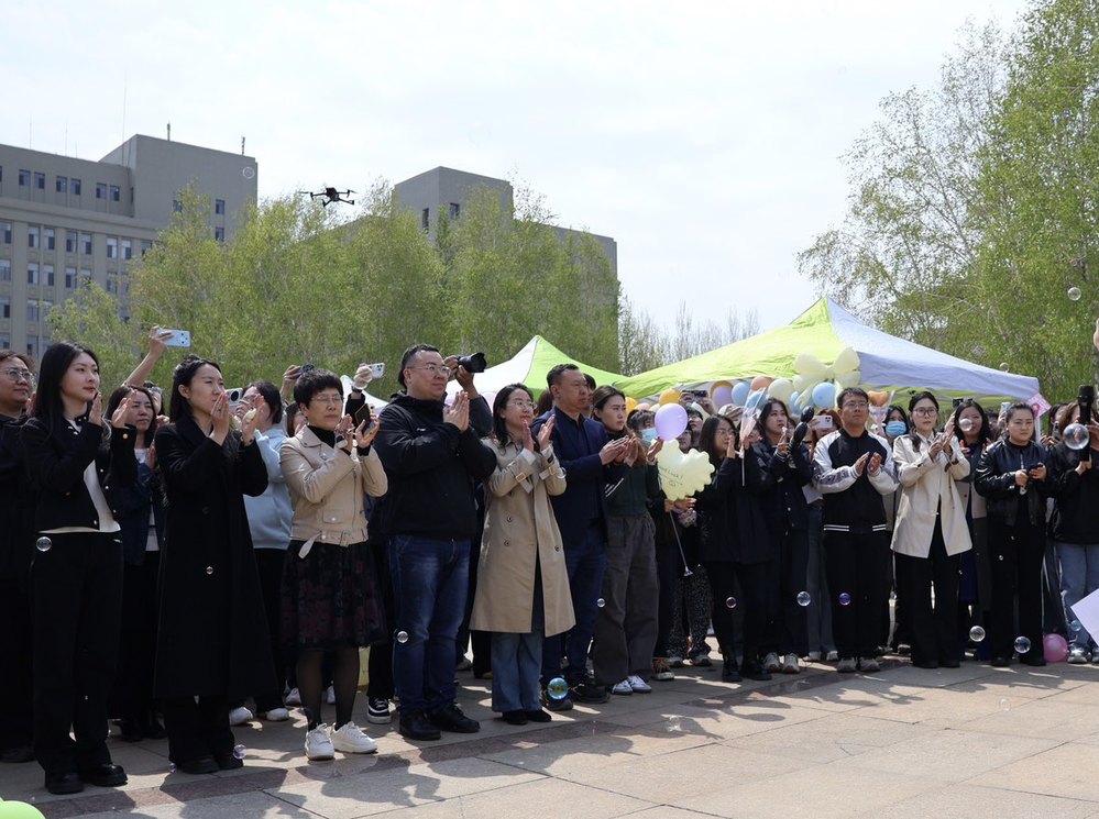 游园会开幕式由心理健康教育中心主任王姝雯主持,学生处长郭晶发言并宣布游园会开幕,现场千余名学生参与互动。