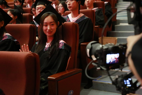 于长福为优秀毕业生代表拨流苏、颁发学位证书