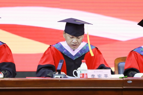 会计学院2021级审计学专业国珈珲代表毕业生发言,深情回顾了求学四载的成长点滴,表达了对母校的眷恋与对未来的憧憬。艺术学院2023级环境设计专业王如意对毕业的学长学姐表达衷心的祝福,并表示会以学长学姐为榜样继续努力,为校争光。人文学院李影辉作为教师代表,分享了教书育人的峥嵘岁月,以师长的殷殷嘱托,勉励毕业生们勇担时代使命,永葆眼中星光。