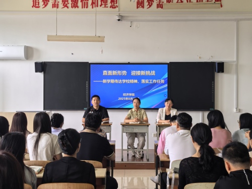 8月23日,经济学院以“直面新形势˙迎接新挑战”为主题召开2025年秋季学期工作会议,传达学校中层干部会议精神,落实工作任务。经济学院院长董雪梅主持会议,党总支书记王超、副院长刘世鹏、全体教师及辅导员参加会议。